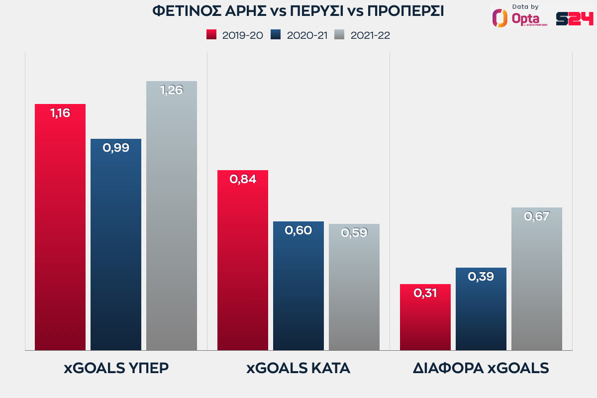 Η βελτίωση του Άρη σε σχέση με πέρυσι και πρόπερσι