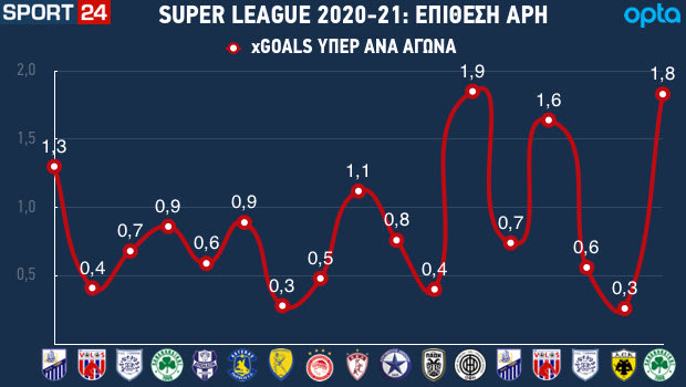 Για τον Άρη τα τέσσερα γκολ παραπάνω ήταν αύξηση 40% και, σε συνδυασμό με την αμυντική λειτουργία, ήταν νίκες και βαθμοί.