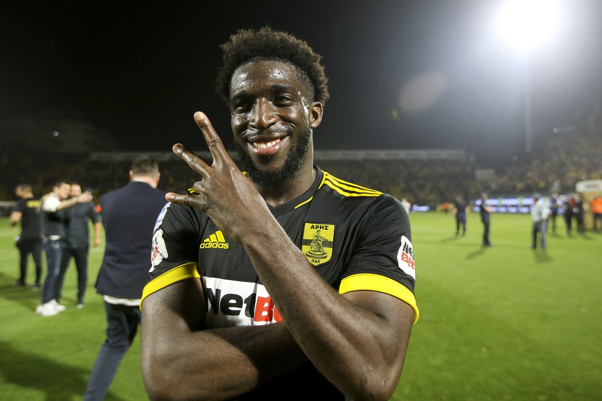 Ο Αμπουμπακάρ Καμαρά του Άρη πανηγυρίζει τη νίκη επί της ΑΕΚ για τα playoffs Super League Interwetten 2021-2022 στο "Κλεάνθης Βικελίδης" | Σάββατο 14 Μαΐου 2022 Eurokinissi Sports