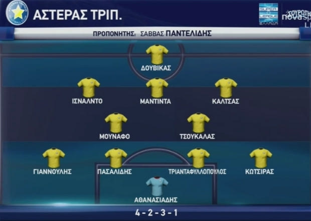 ΑΣΤΕΡΑΣ ΤΡΙΠΟΛΗΣ (Σάββας Παντελίδης): Αθανασιάδης, Γιαννούλης, Κώτσιρας, Τριανταφυλλόπουλος, Πασαλίδης, Τσουκαλάς, Μουνάφο, Μαντίντα (90′ Τόνσο), Ισνάλντο 79′ Τσιλιανίδης), Καλτσάς, Δουβίκας (73′ Μανιάς)