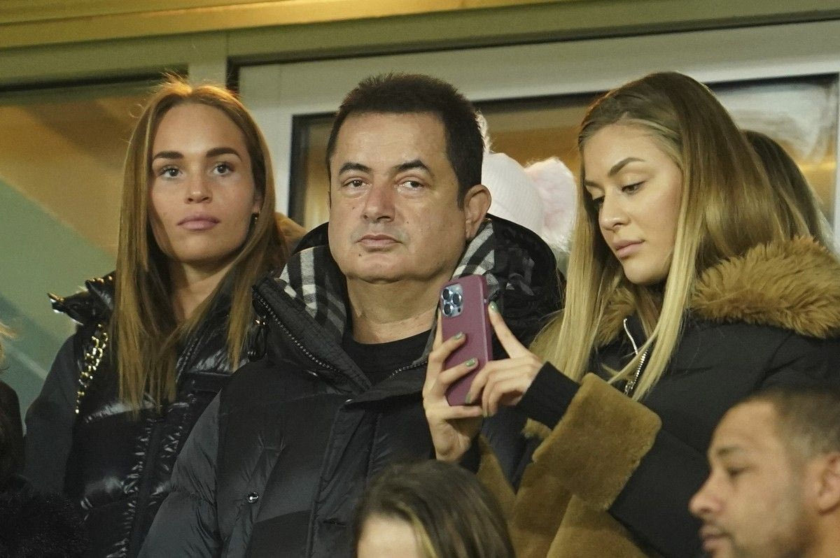Turkish businessman and media tycoon Acun Ilcal, center, watches the English FA Cup third round soccer match between Hull City and Everton at the MKM Stadium in Hull, England, Saturday, Jan. 8, 2022. (AP Photo/Jon Super)