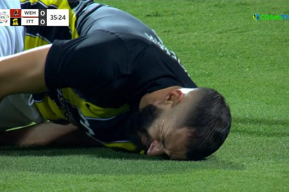 Ο Καρίμ Μπενζεμά τραυματίστηκε στο 36ο λεπτό του αγώνα της Αλ Ιτιχάντ με την Αλ Ουέχντα του Γιώργου Δώνη στη διεκδίκηση της μπάλας.