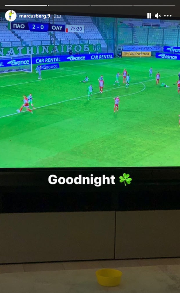 Ο Μάρκους Μπεργκ πανηγύρισε τη νίκη του Παναθηναϊκού επί του Ολυμπιακού με story στο Instagram.