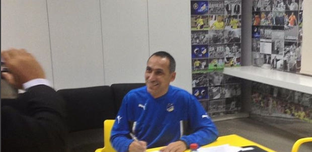 Ο Δώνης τη στιγμή των υπογραφών στον ΑΠΟΕΛ