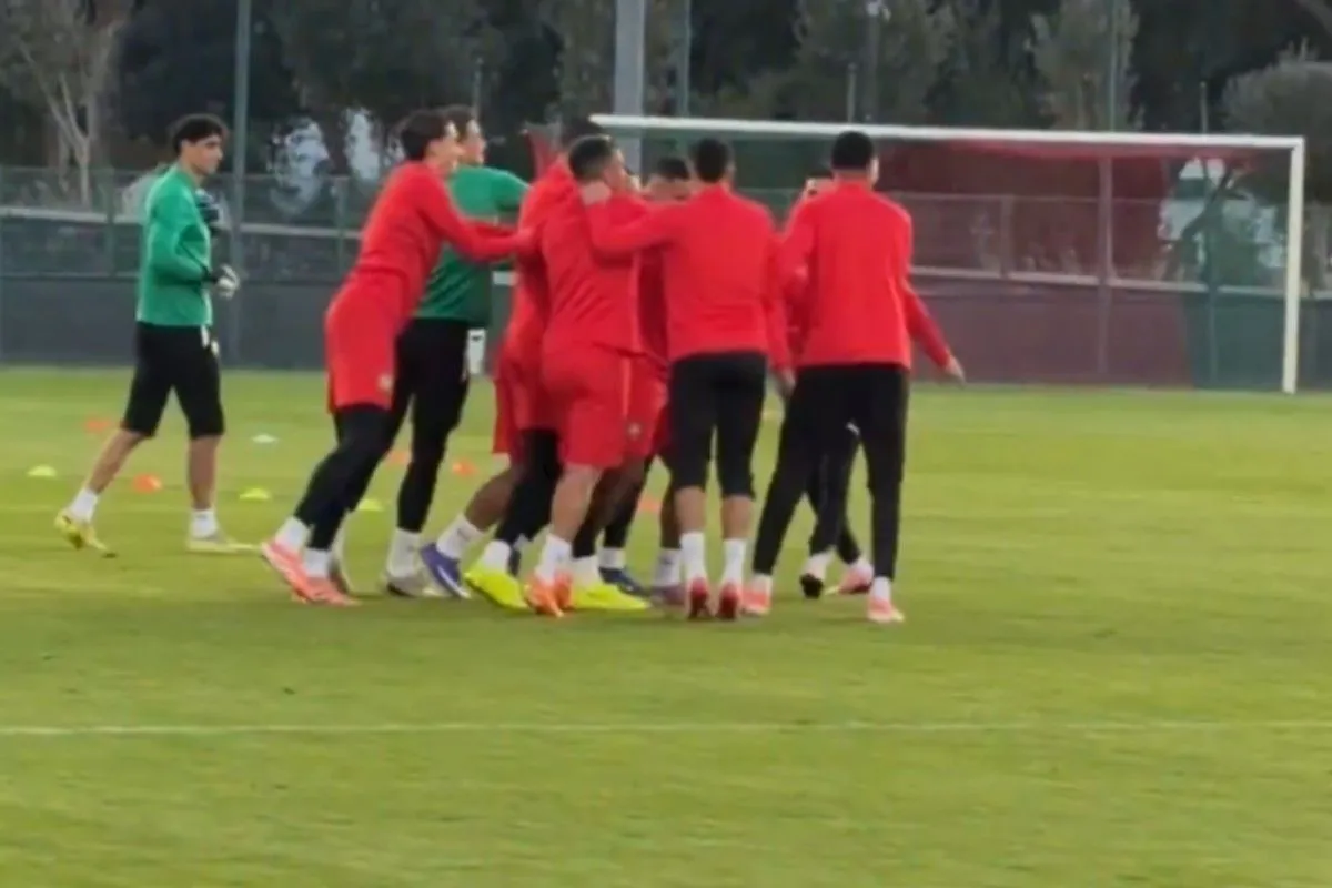 Η εθνική Μαρόκου συνεχίζει όμως, την προετοιμασία της, καθώς την Παρασκευή (26/12) αντιμετωπίζει το Μάλι. Στην προπόνηση της Πέμπτης (25/12) ο Ελ Κααμπί έκανε… το λάθος και οι συμπαίκτες του τον “τιμώρησαν” με φατούρο.