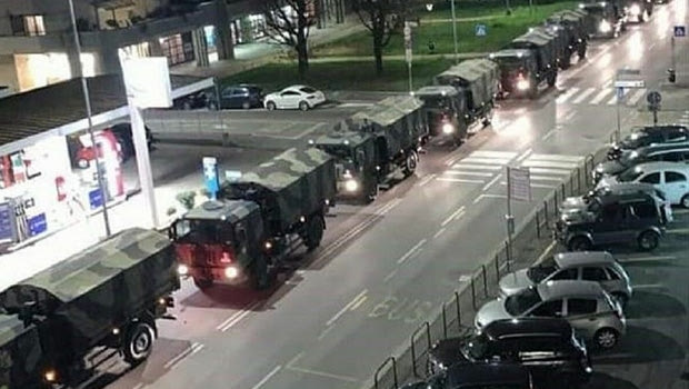 Κομβόι στρατιωτικών οχημάτων με νεκρούς από τον κορονοϊό στο Μπέργκαμο
