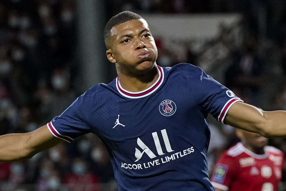 Ο Κιλιάν Εμπαπέ πανηγυρίζει το γκολ του απέναντι στην Μπρεστ © 2021 Daniel Cole/AP IMAGES