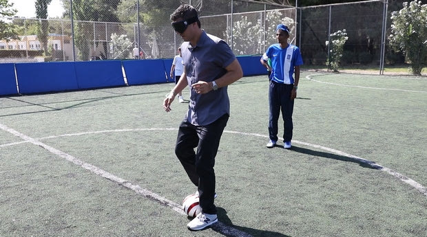 Οι τρεις πρεσβευτές της Ελλάδας στο “Football for Friendship” συνομίλησαν με τους αθλητές και τις αθλήτριες και προπονήθηκαν μαζί τους φορώντας τον απαραίτητο εξοπλισμό και ακολουθώντας τις οδηγίες της προπονήτριας της ομάδας, κυρίας Φιλίτσας Γλαρού.
