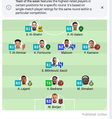 Ο Κώστας Φορτούνης συμπεριλήφθηκε στην καλύτερη ενδεκάδα της 10ης αγωνιστικής της Saudi Pro League, βάσει των επιδόσεών του σύμφωνα με την Opta.