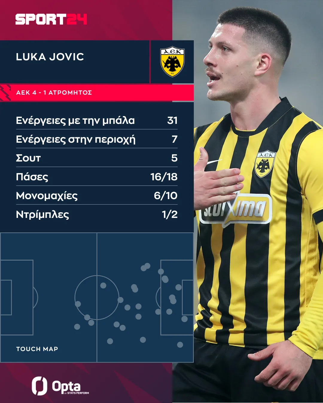Ο Γιόβιτς πέρασε μια περίοδο που έψαχνε πολύ το γκολ, ενώ στα υπόλοιπα κομμάτια του παιχνιδιού μπορούσε και βοηθούσε αρκετά την ΑΕΚ. Πλέον βρήκε αυτό που του έλειπε και αφήνει υποσχέσεις ότι μπορεί να βοηθήσει την ΑΕΚ και στο σκοράρισμα, λαμβάνοντας εξ ολοκλήρου τον ρόλο του ηγέτη που ο Μάρκο Νίκολιτς θέλει να έχει ο Σέρβος στην “δική του ΑΕΚ”.