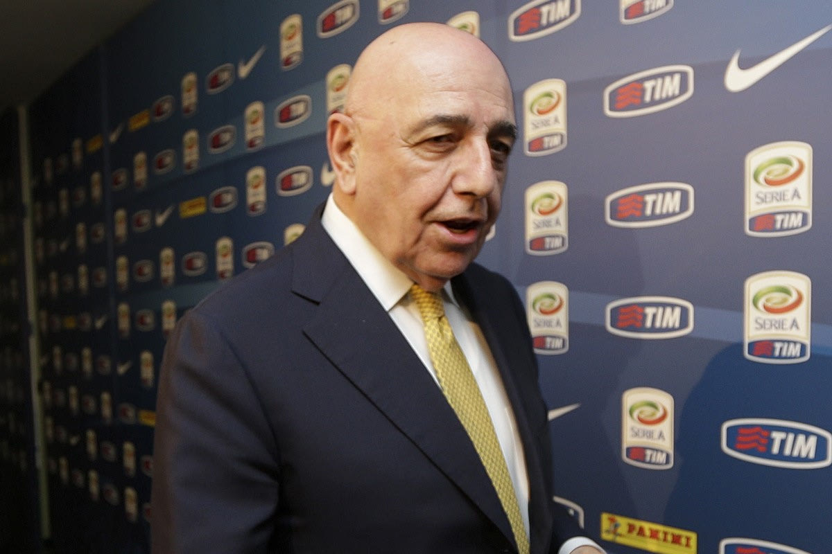 AC Milan vice president Adriano Galliani leaves the Lega calcio headquarter in Milan, Italy, Friday, March 6, 2015. Serie A has voted to provide crisis-hit Parma with a 5 million euro ($5.5 million) emergency fund to help the club finish the season. Sixteen of the 20 clubs in the top Italian league voted in favor of the measure Friday, three abstained and Cesena had the only vote against the move. The measure means last-place Parma should be able to play Atalanta on Sunday after its previous two matches were postponed indefinitely with the club unable to pay for basic services like security and electricity.(AP Photo/Luca Bruno) @2015 Luca Bruno/AP IMAGES