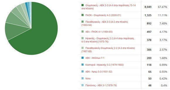Η ποδοσφαιρική Ελλάδα έχει κατατάξει στη συνείδησή αυτό το ματς ως τον “τελικό των τελικών” στην ιστορία του Κυπέλλου Ελλάδας και αυτό φάνηκε και στο άτυπο δημοψήφισμα που έγινε μέσω του Sport24.gr.