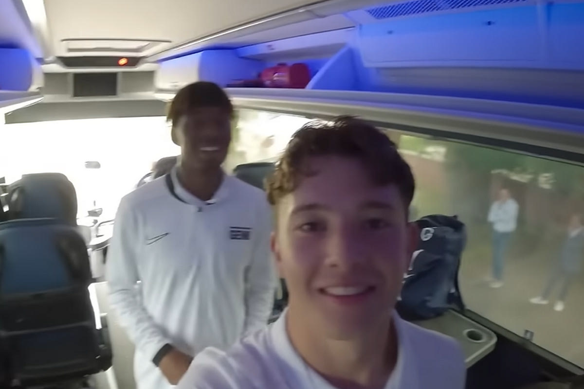 Έχοντας αναλάβει ουσιαστικά χρέη δημιουργού διαδικτυακού περιεχομένου, ο 17χρονος “ξενάγησε” μαζί με τον συμπαίκτη του, Νόα Αντεντέγι-Στέρνμπεργκ, τους φίλους της ομάδας στο πολυτελέστατο πούλμαν, το οποίο προορίζεται για τις μετακινήσεις και τις αποστολές των Βέλγων.