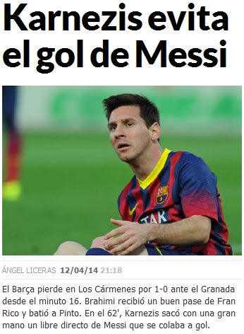 “Ο Καρνέζης απέτρεψε το γκολ του Μέσι”, ήταν ο τίτλος στο κεντρικό (live) της Marca μετά την απόκρουση του Έλληνα στο φάουλ του Αργεντινού, με το λιντ αναφέρει: “Ο Καρνέζης έκανε μεγάλη απόκρουση σε απευθείας εκτέλεση φάουλ του Μέσι, ο οποίος πήγε να πετύχει ένα πονηρό γκολ”.