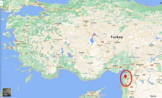 Στο χάρτη φαίνεται με κόκκινο κύκλο η πόλη της Χατάι που βρίσκεται στο νοτιοανατολικό κομμάτι της Τουρκίας.