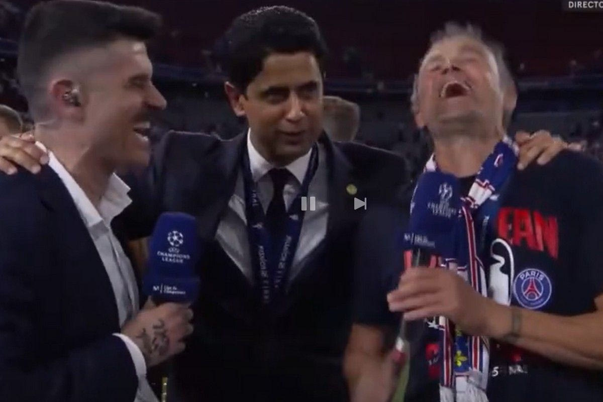 Ιδιαίτερα χαρούμενος ήταν και ο πρόεδρος των Παριζιάνων, Νασέρ Αλ – Κελαϊφί, που είδε επιτέλους την Παρί να κατακτά το βαρύτιμο τρόπαιο του Champions League. Γι’ αυτό και έκανε παρέμβαση την ώρα που έκανε δηλώσεις ο Λουίς Ενρίκε σε ισπανικό κανάλι. “Είναι ο καλύτερος προπονητής στον κόσμο, όλη η Ισπανία πρέπει να είναι περήφανη γι’ αυτόν. Είναι ο καλύτερος προπονητής και ο καλύτερος άνθρωπος”, ανέφερε ο πρόεδρος των Παριζιάνων προκαλώντας το γέλιο του Ενρίκε αλλά και των δημοσιογράφων.