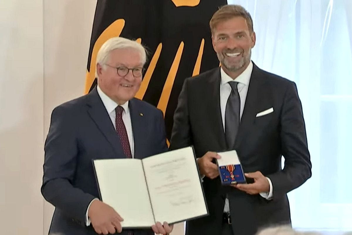 Ο Γιούγκεν Κλοπ τιμήθηκε την Τρίτη (1/10) από το γερμανικό κράτος. Ο πρώην προπονητής της Λίβερπουλ έλαβε το Τάγμα Αξίας, το ομοσπονδιακό παράσημο της Γερμανίας, η οποία θέλησε να τον τιμήσει για τη σπουδαία συμβολή του όλα αυτά τα χρόνια στην προβολή της χώρας.