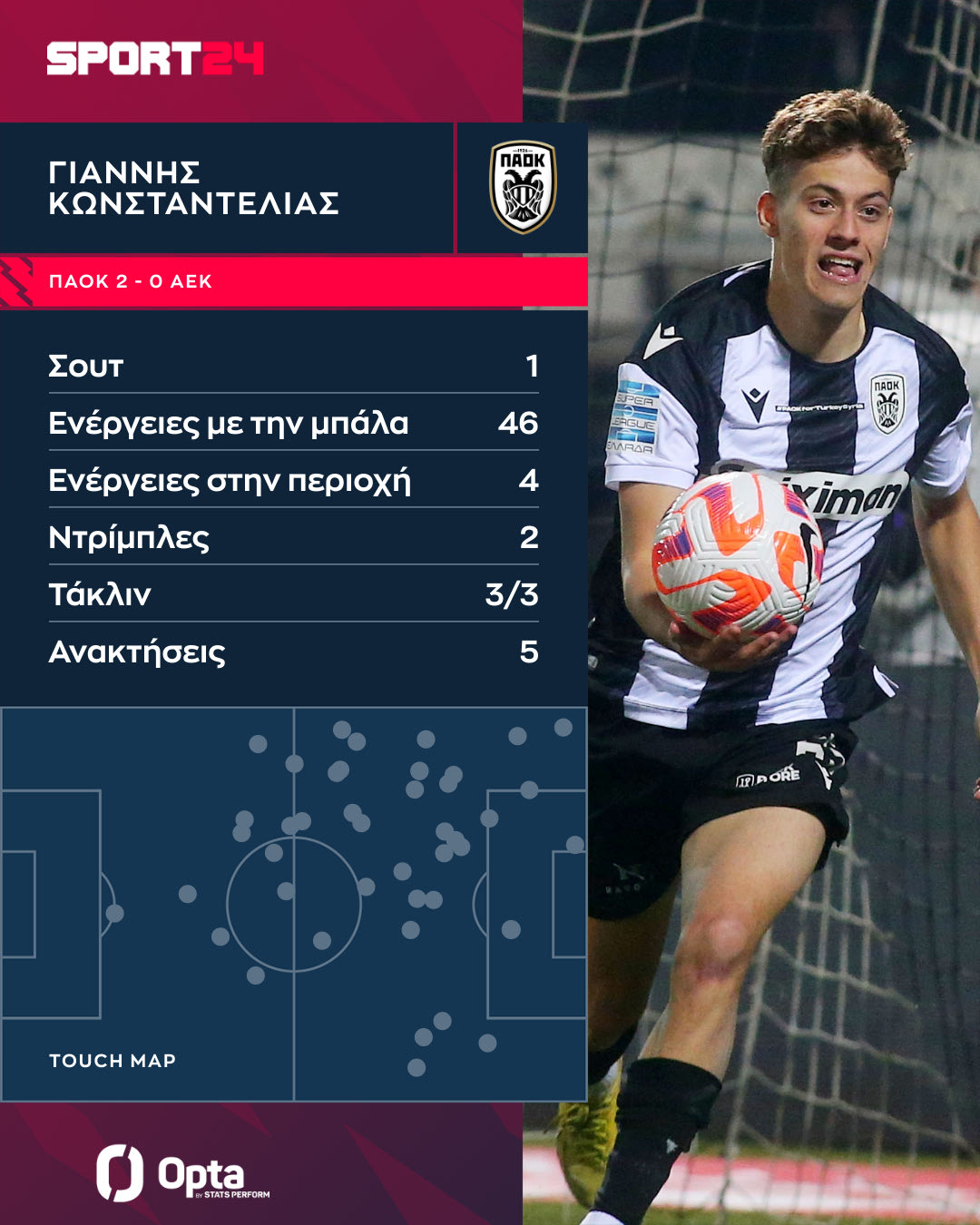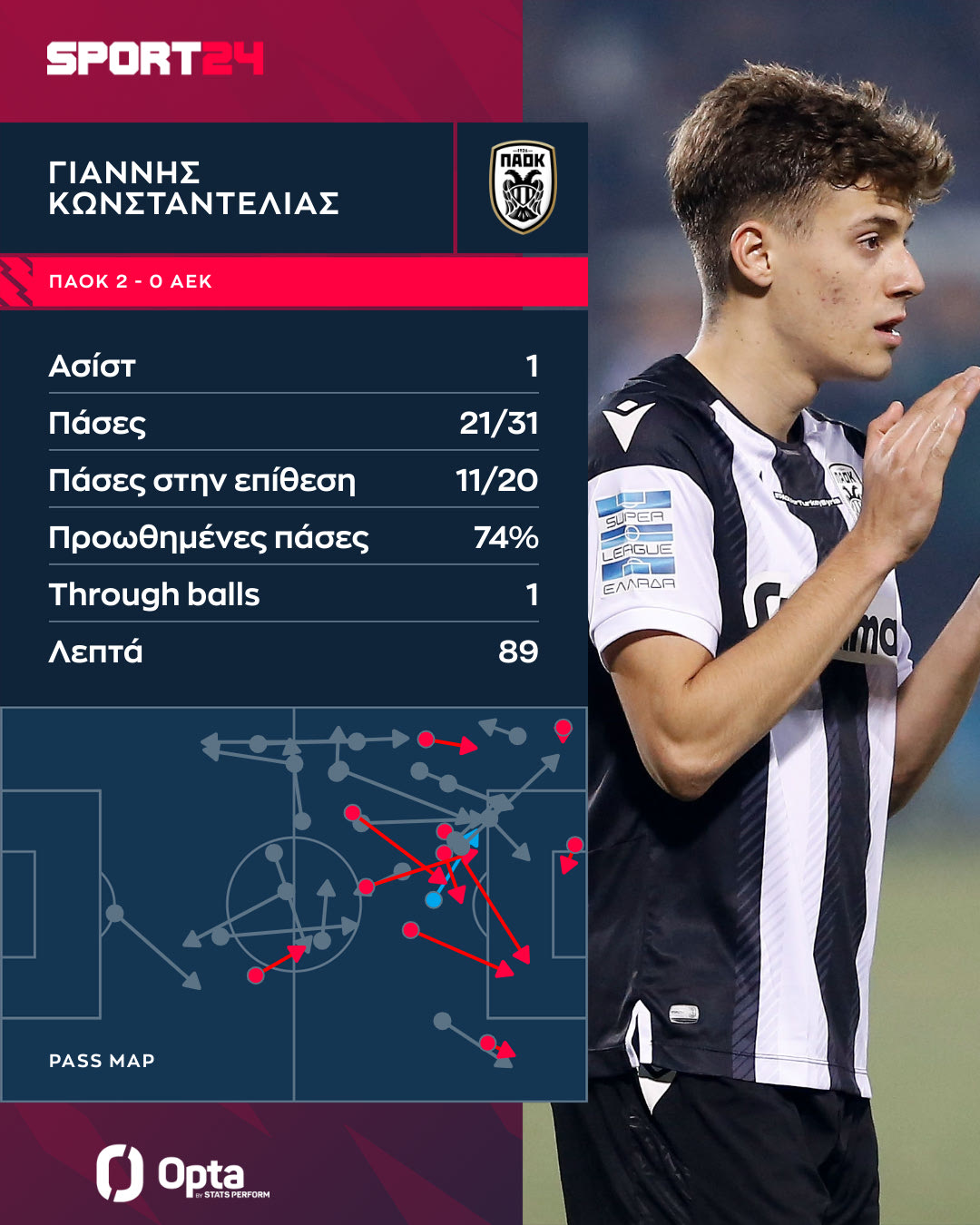 Οι ενέργειες και οι επιδόσεις του Κωνσταντέλια απέναντι στην ΑΕΚ
