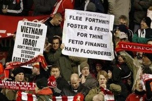 Να σημειωθεί πως οι φίλαθλοι της Λίβερπουλ εξέφρασαν την αντίθεσή τους προς τους Αμερικανούς ιδιοκτήτες του αγγλικού συλλόγου, Τομ Χικς και Τζορτζ Τζιλέτ. Ενδεικτικό το πανό της φωτογραφίας.