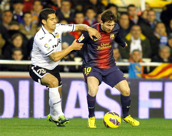 5. Μαρκάροντας τον Μέσι σε αγώνα της Βαλένθια με τη Μπαρτσελόνα στο “Μεστάγια”(3/2/2013)
