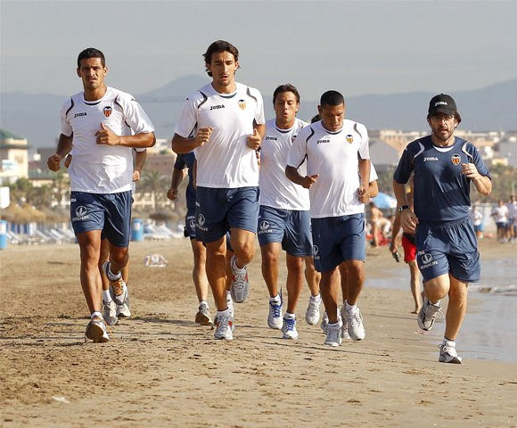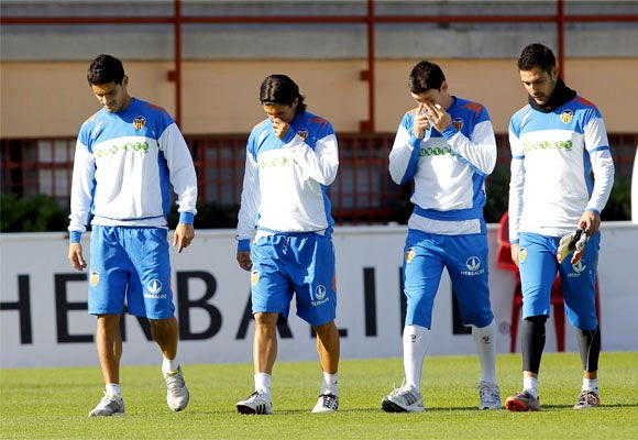 18. Προπόνηση της Βαλένθια. Από αριστερά, Ρικάρντο Κόστα, Τσόρι Ντομίνγκες, Αντούριθ και Μογιά (1/11/2010)
