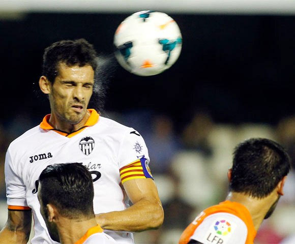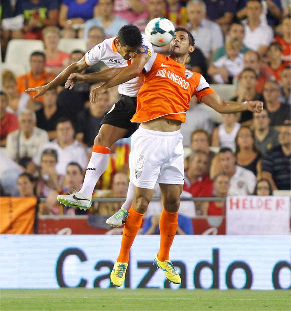 16. Εναέρια μονομαχία των Ρικάρντο Κόστα και Ρόκε Σάντα Κρους σε αγώνα της Βαλένθια με τη Μάλαγα στο “Μεστάγια” (17/8/2013)