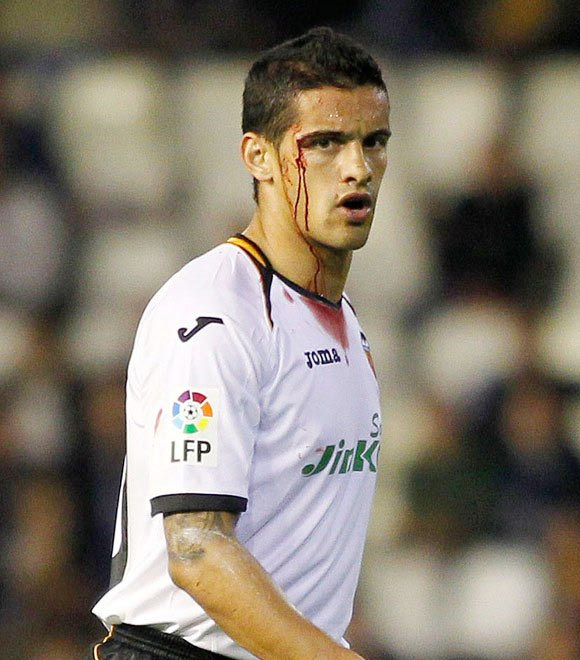 22. Τραυματισμένος στο πρόσωπο σε αγώνα της Βαλένθια με την Οσασούνα (2/5/2012)