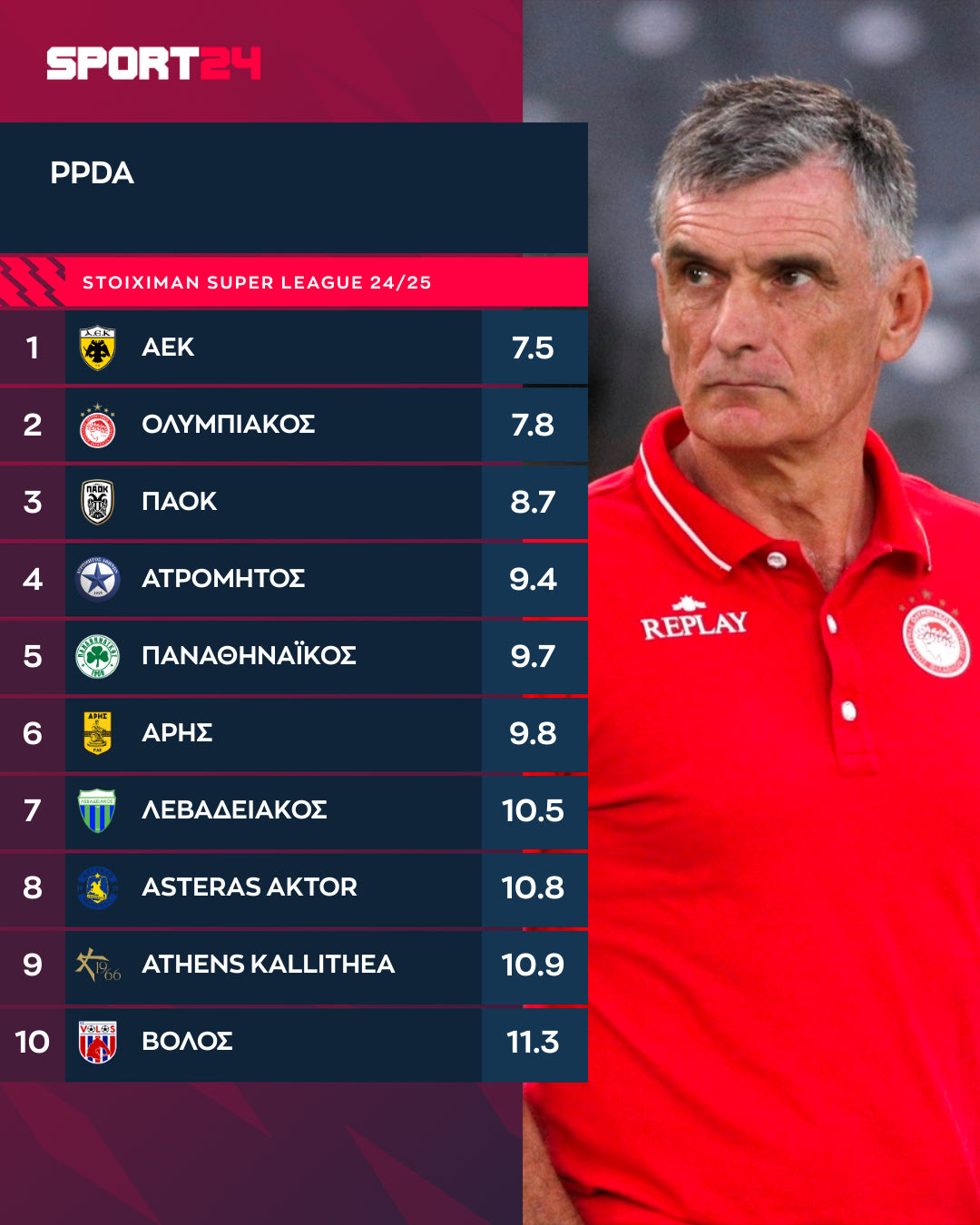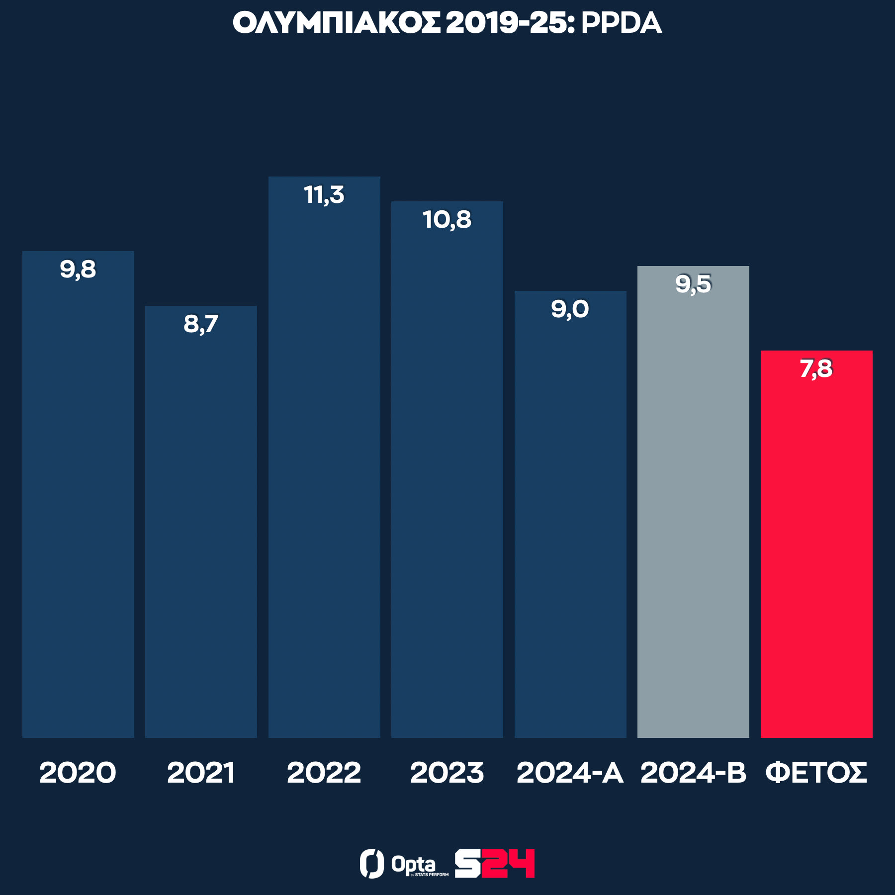 Και κλείνουμε αυτή τη ματιά με το PPDA, με την ένταση δηλαδή στην πίεση ψηλά στο γήπεδο.