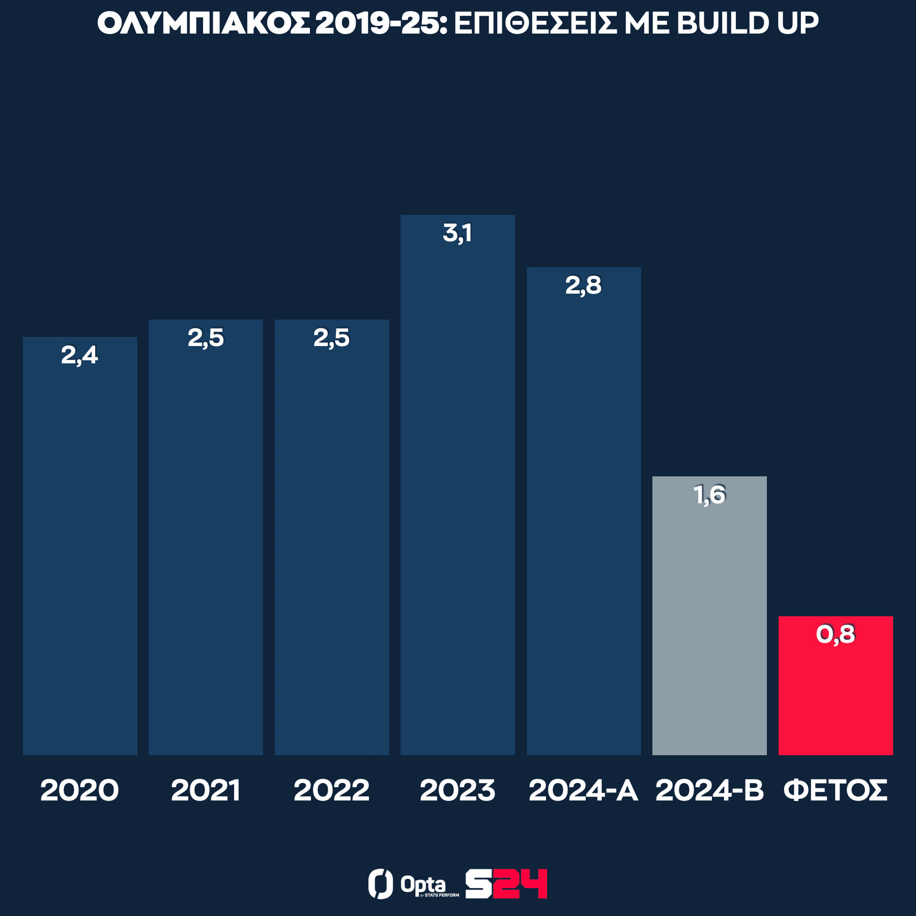 Οι μέσοι όροι του Ολυμπιακού στις επιθέσεις με build up από το 2019 μέχρι σήμερα