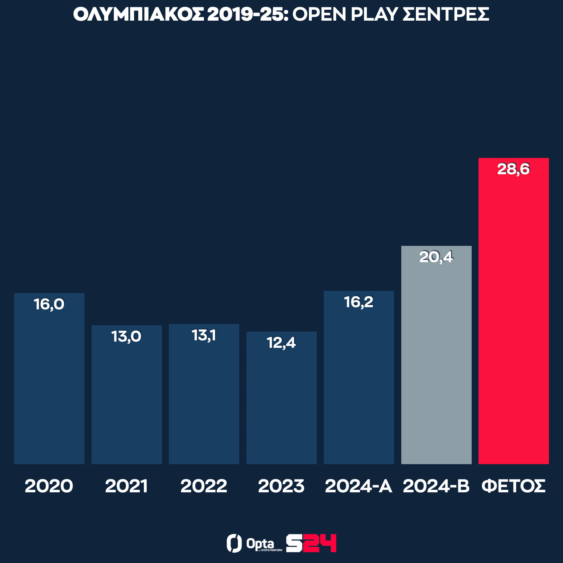 Οι μέσοι όροι του Ολυμπιακού στις open play σέντρες από το 2019 μέχρι σήμερα