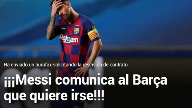 Σύμφωνα με αργεντίνικα και ισπανικά ΜΜΕ ο Λιονέλ Μέσι κοινοποίησε με φαξ στην Μπαρτσελόνα ότι θέλει να αποχωρήσει άμεσα από τους μπλαουγκράνα.