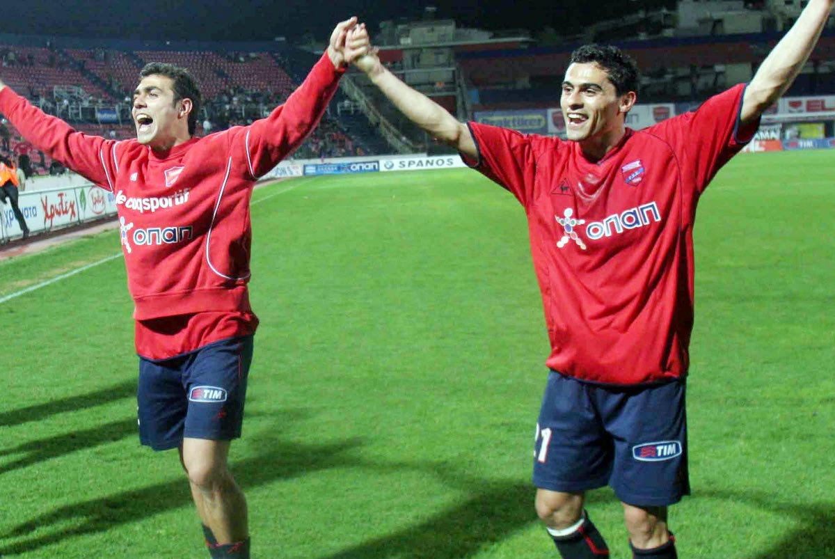 Οι Γιάννης Μανιάτης και Νίκος Σπυρόπουλος με τη φανέλα του Πανιωνίου INTIME SPORTS