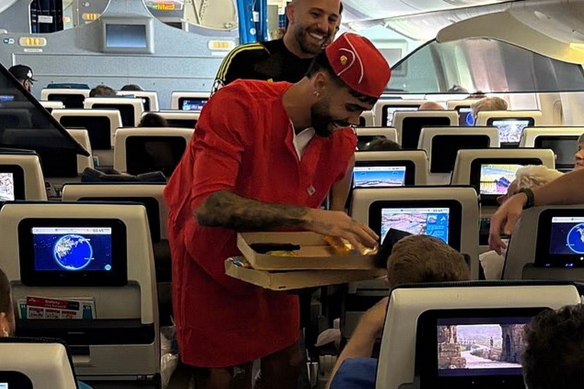 Ο 29χρονος γκολκίπερ είπε να το διασκεδάσει με τον πιο απρόσμενο τρόπο, φόρεσε στολή αεροσυνοδού και σέρβιρε μπισκότα στους επιβάτες της πτήσης.