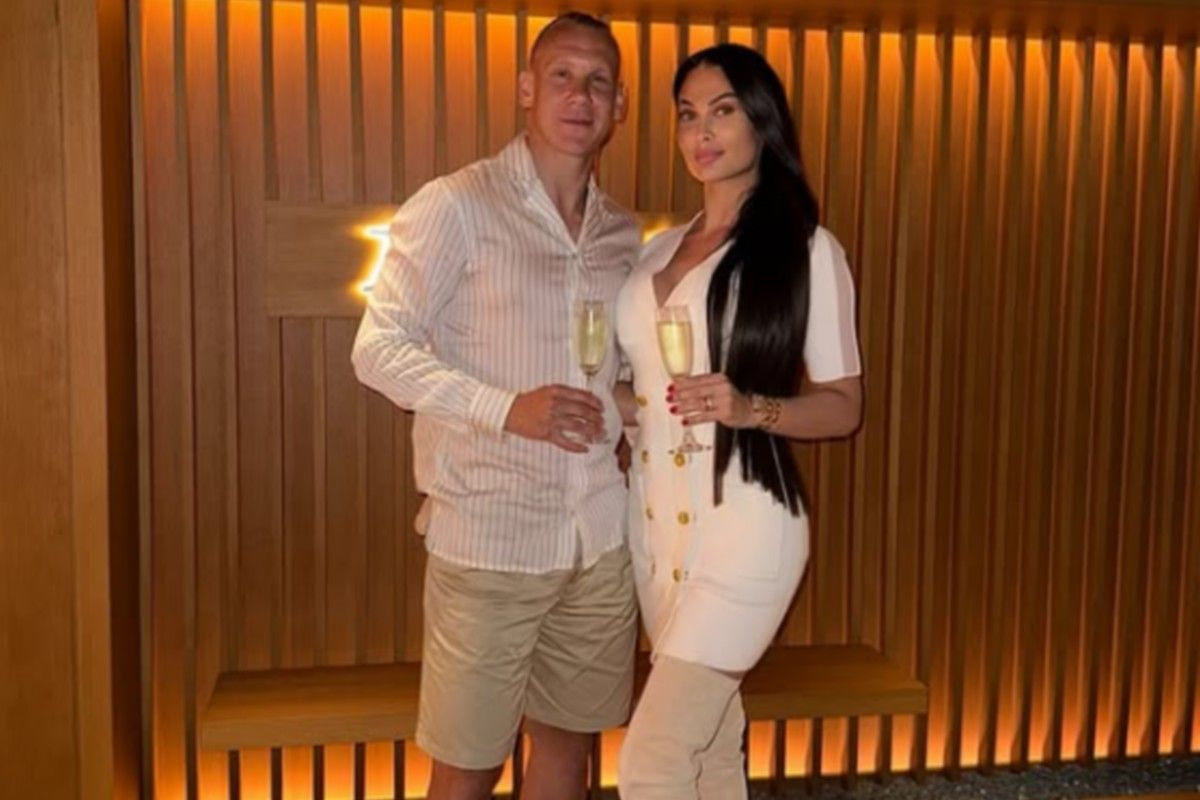 Ο έμπειρος Κροάτης αμυντικός περνά ξέγνοιαστες στιγμές με τη σύζυγό του, Ιβάνα Βίντα, με φόντο τον ήλιο και τη θάλασσα της Ελλάδας.