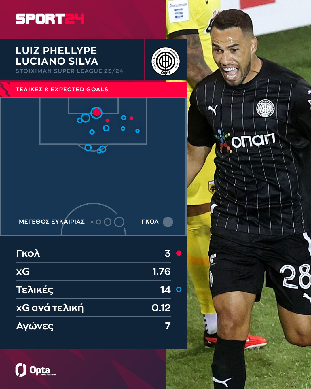 Ο Φελίπε συνολικά στο πρωτάθλημα έχει 14 τελικές – οι 11 στη μεγάλη περιοχή – με “αξία” 1.76xG. Η δουλειά του στην αναμέτρηση κόντρα στην ΑΕΚ ήταν πολύ σημαντική. Πέρα από το γκολ του, είχε ακόμη μία τελική. Συγκεκριμένα ήταν η κεφαλιά του στο 49ο λεπτό με “αξία” 0.43xG.