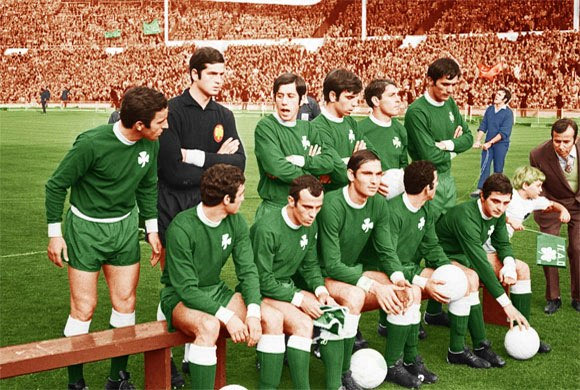 Οι παίκτες του Παναθηναϊκού φωτογραφίζονται πριν τον τελικό του “Γουέμπλεϊ” (1971)