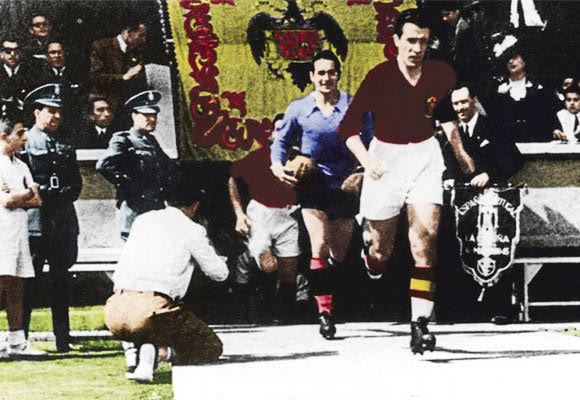 Το σήμα της Εθνικής Ισπανίας τότε, δεν είχε καμία σχέση με το σημερινό που είναι ο θυρεός του βασιλικού οίκου των Βουρβόνων. Εκείνη την εποχή πάνω στη φανέλα ήταν ραμμένος ο αετός (aguila) του Φράνκο, ο aguilucho (αετούλης), όπως τον αποκαλούσαν κοροϊδευτικά οι Ισπανοί. Αυτόν τον αετό που βλέπουμε στη φωτογραφία, είχε η φανέλα του Ιρίμπαρ