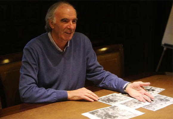 Ο Χοσέ Άνχελ Ιρίμπαρ βλέπει τις φωτογραφίες του Οικονομόπουλου από τον τελικό του ’71 στα γραφεία της Deia (5/11/2015)