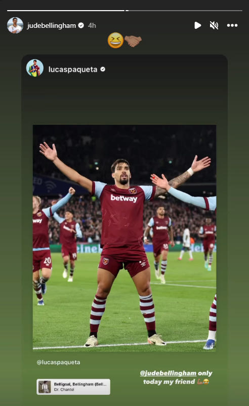 Η επιρροή του Τζουντ Μπέλιγχαμ στο παγκόσμιο ποδόσφαιρο είναι ραγδαία τα τελευταία χρόνια, με τον Λούκας Πακετά να μιμείται τον πανηγυρισμό του μετά το τέρμα του κόντρα στον Ολυμπιακό και τον Άγγλο σταρ να του απαντάει μέσα από τα social media.