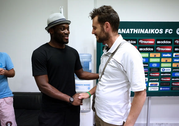 Ο Μάικλ Εσιέν με τον ρεπόρτερ του Sport24.gr, Μπάμπη Τσιμπίδα