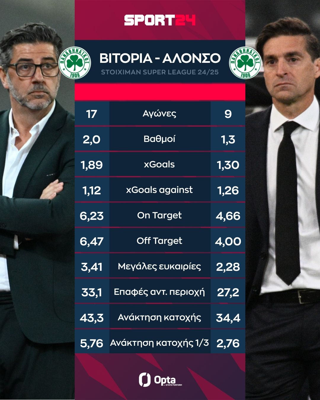 Δεδομένα ο Βιτόρια έχει κάνει λάθη, δεδομένα χρεώνεται την κατάρρευση (και αγωνιστικά και κυρίως ψυχολογικά) μετά το 2-2 από τον Πανσερραϊκό. Ο Παναθηναϊκός μπορεί να μην έχει παίξει μπαλάρα σε πολλά ματς, αλλά τουλάχιστον έδειχνε ότι ήταν ομάδα. Είχε αρχή, μέση και τέλος. Και στην εξίσωση πρέπει να μπει ότι όλα τα στοιχεία βελτιώθηκαν μετά από ένα “τρελό” τετράμηνο, στο οποίο ο Αλόνσο είχε καταφέρει να απωλέσει κάθε ποδοσφαιρική σταθερά.