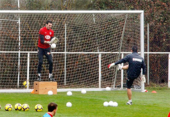4. Το καλοκαίρι του 2009 η Ατλέτικο τον πήρε ξανά, αλλά οι τραυματισμοί δεν τον άφησαν να καθιερωθεί. Έπαιξε σε 15 παιχνίδια και δέχτηκε 17 γκολ. Εδώ σε προπόνηση της Ατλέτικο στη Majadahonda (2009).