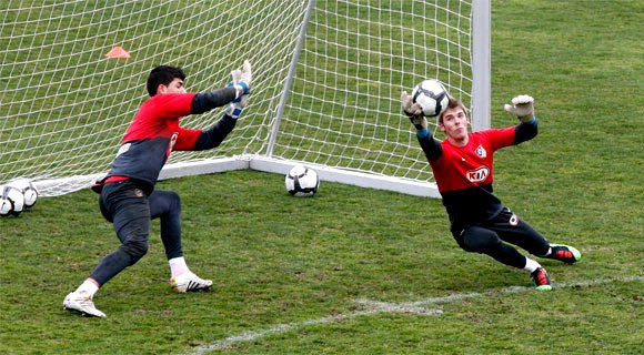 10. Σε προπόνηση της Ατλέτικο Μαδρίτης μαζί με τον Νταβίδ Ντε Χέα (2009)