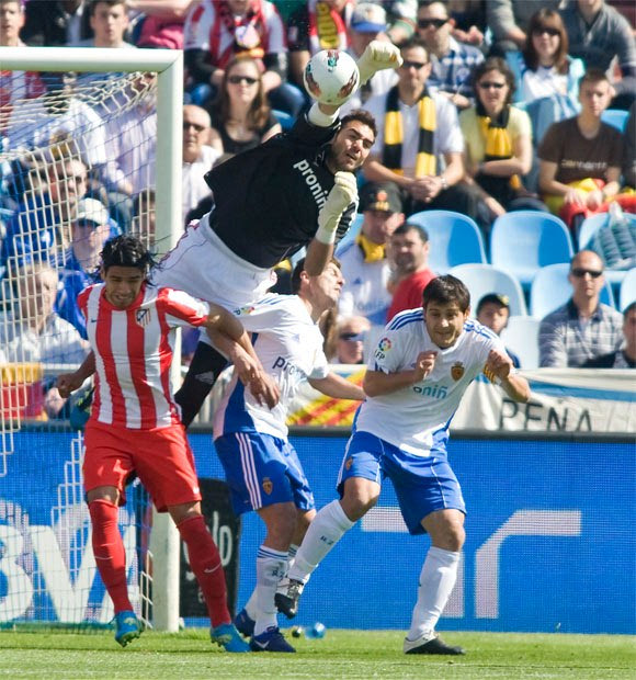 19. Έξοδος του Ρομπέρτο μπροστά από τον Φαλκάο σε αγώνα της Σαραγόσα με την Ατλέτικο Μαδρίτης στη “Ρομαρέδα” (25/3/2012)