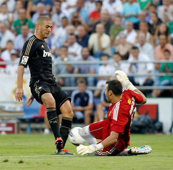 21. Ο Ρομπέρτο πέφτει στα πόδια του Μπενζεμά και αποκρούει τη μπάλα σε αγώνα της Σαραγόσα με τη Ρεάλ Μαδρίτης στη “Ρομαρέδα” (28/8/2011)