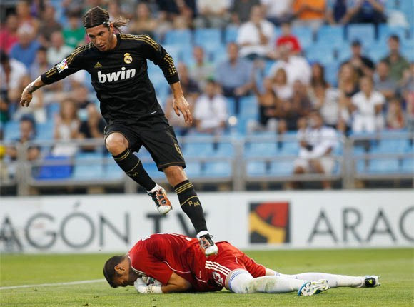 23. Ο Ρομπέρτο μπλοκάρει τη μπάλα μπροστά από τον Σέρχιο Ράμος σε αγώνα της Σαραγόσα με τη Ρεάλ Μαδρίτης στη “Ρομαρέδα” (28/8/2011)