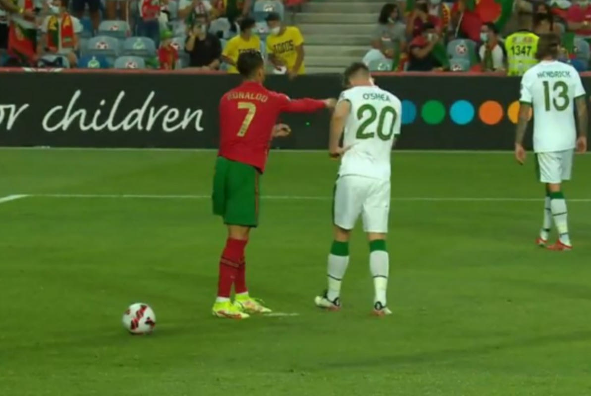 Στο 11' της αναμέτρησης ανάμεσα στην Πορτογαλία και την Ιρλανδία την ώρα που ο Ρονάλντο ήταν έτοιμος να εκτελέσει πέναλτι ο Ο' Σέι του κλώτσησε τη μπάλα με τον 36χρονο επιθετικό να τον χαστουκίζει.