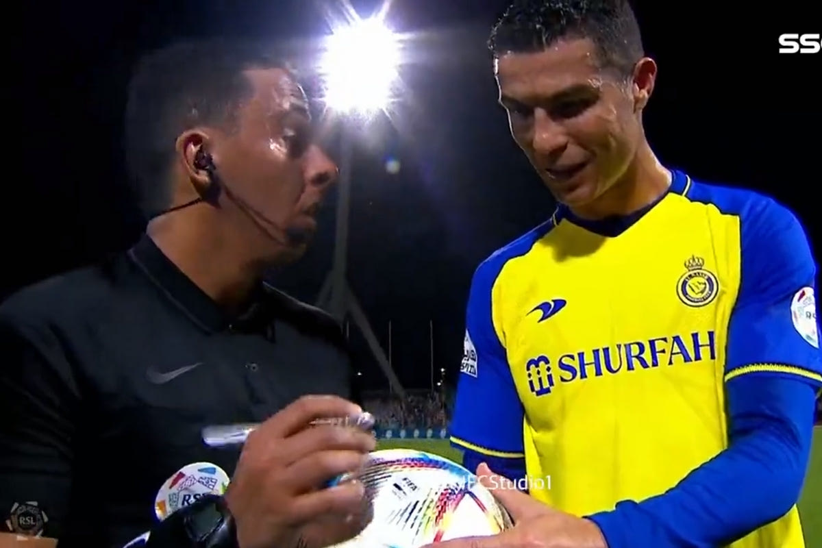 Ο διαιτητής υπογράφει την μπάλα που ο Ρονάλντο σκόραρε τέσσερα γκολ