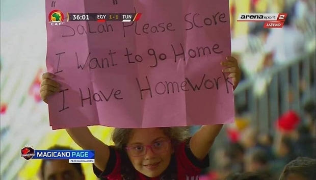 Μια νεαρή μαθήτρια σήκωσε πανό στο Αίγυπτος - Τυνησία ζητώντας από τον Σαλάχ να σκοράρει για να πάει γρήγορα στο σπίτι της, καθώς είχε διάβασμα. Ο σταρ της Λίβερπουλ έβαλε γκολ στο 90' και ζήτησε συγγνώμη! (PHOTOS)