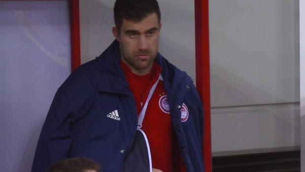 Ο Σωκράτης με δεμένο ώμο στον πάγκο του Ολυμπιακού